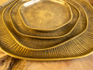 Elevate your dining and decor experience with this exquisite set of handcrafted gold platters. Featuring a modern, organic design with subtle textu...