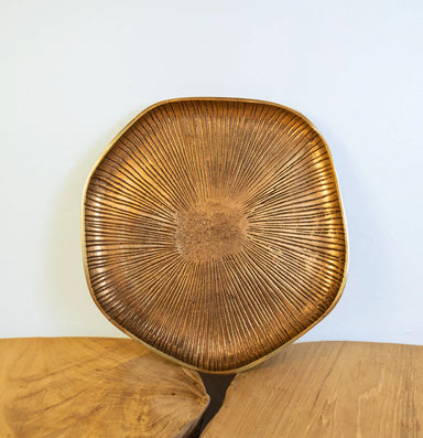 Elevate your decor with this handcrafted antique brass decorative plate featuring a radiant sunburst texture. The organic, softly rounded shape and...