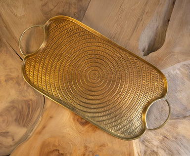 Elevate your hosting and decor with this stunning handcrafted gold serving tray. Featuring a unique concentric textured pattern and an elegant oval...