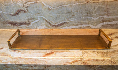 Elevate your hosting experience with this handcrafted rectangular brass serving tray, designed with sleek elevated handles for both style and funct...