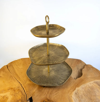 Add a touch of elegance and functionality to your gatherings with this stunning three-tier gold serving stand. Designed with a sophisticated, textu...