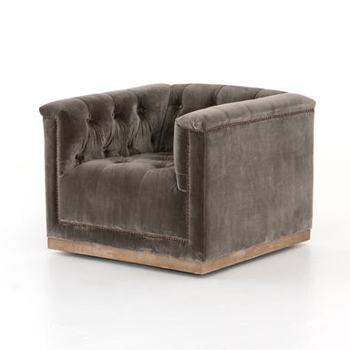 This is a transitional-style swivel chair with a tailored skirted base and gently flared arms. It features a clean, versatile taupe or greige linen...